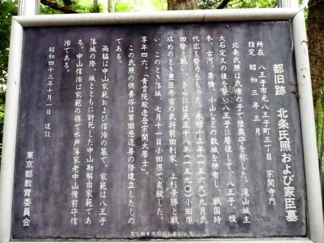北条氏照及び家臣墓の説明 | 解説板 | 大手門解説板 | 大手道解説板 |
