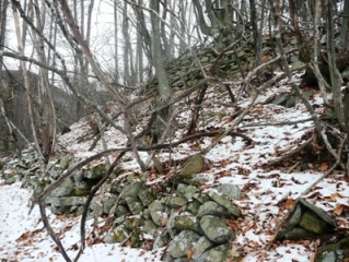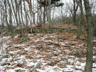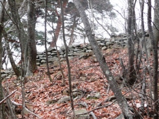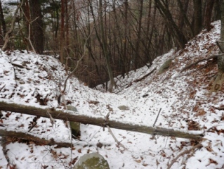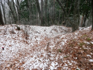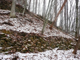 | 倒木がいい味を出しています。 | 間に窪みがあるのは、おそらく門跡でしょう。 | |||