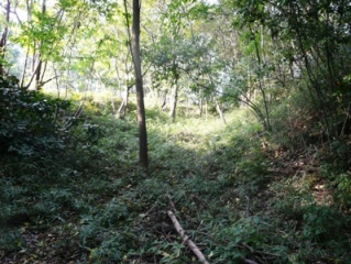 堀底を進むと、大きな曲輪が |