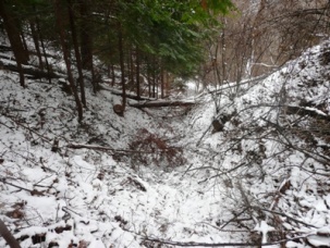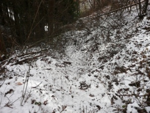 | バス停があるので左折です。あとは案内板があるので迷う事はないでしょう。 | 竪掘だとすれば、すごい規模です。 | |||