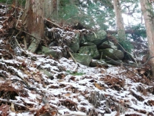 | かなり明瞭。主郭周囲をほぼ一周しています | このあたりの石垣は崩落したのかもしれません。 | |||